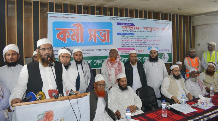 মঙ্গলবার বাদ মাগরিব প্রেসক্লাব যশোর মিলনায়তনে বাংলাদেশ খেলাফত মজলিস, যশোর জেলা শাখার কর্মী সভায় প্রধান অতিথির বক্তব্যে তিনি এই মন্তব্য করেন। জেলা সভাপতি মাওলানা আব্দুল মান্নানের সভাপতিত্বে এবং জেলা সেক্রেটারি মুফতী মাসুম বিল্লাহর সঞ্চালনায় এই সভা অনুষ্ঠিত হয়।