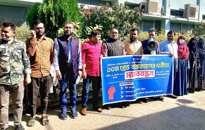 যশোরে মেডিকেল টেকনোলজিস্ট ও ফার্মাসিস্টদের মানববন্ধন