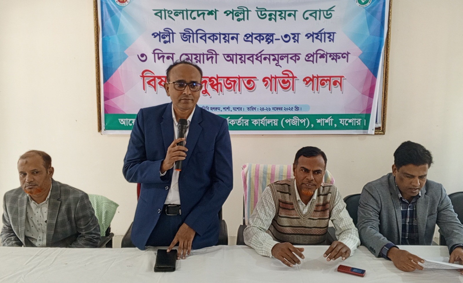 সোমবার বিআরডিবি পল্লী জীবিকায়ন প্রকল্পের (পজীপ) আয়োজনে-তৃতীয় পর্যায়ে শার্শা অফিসের হলরুমে দুগ্ধজাত গাভী পালনে আয়বর্ধণমূলক ও ঝিকরগাছায় রাজস্ব বাজেটের আওতায় দক্ষতা উন্নয়নে স্ব’স্ব অফিসের হলরুমে পৃথক প্রশিক্ষণ অনুষ্ঠানে প্রধান অতিথি ও প্রশিক্ষক হিসেবে ছিলেন, বিআরডিবি যশোরের উপ-পরিচালক বি এম কামরুজ্জামান।