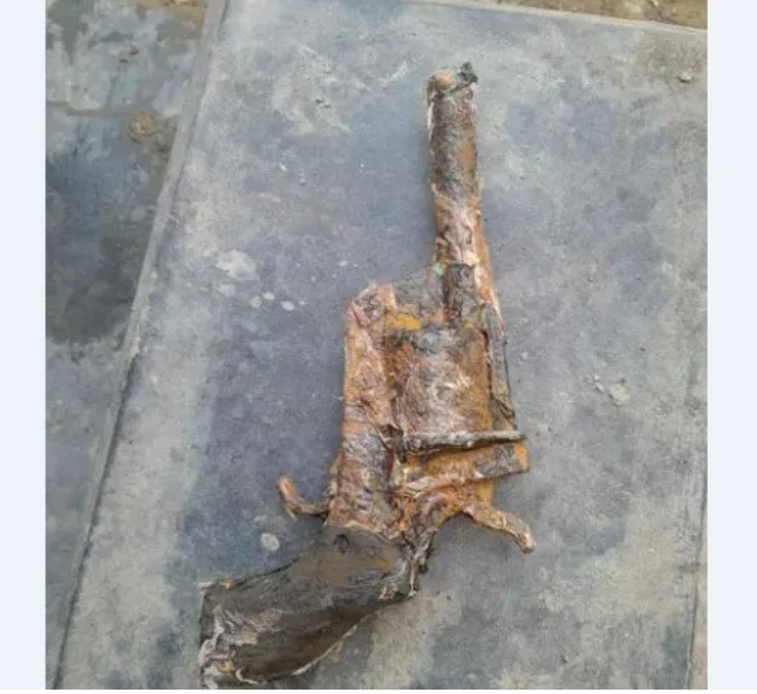 সোমবার (২৪ নভেম্বর) বিকেল ৫টার দিকে কেষ্ট পালের পৈত্রিক বাড়ির নির্মাণ কাজের সময় মাটি খুঁড়তে গিয়ে পিস্তলটি দেখতে পান শ্রমিকরা।