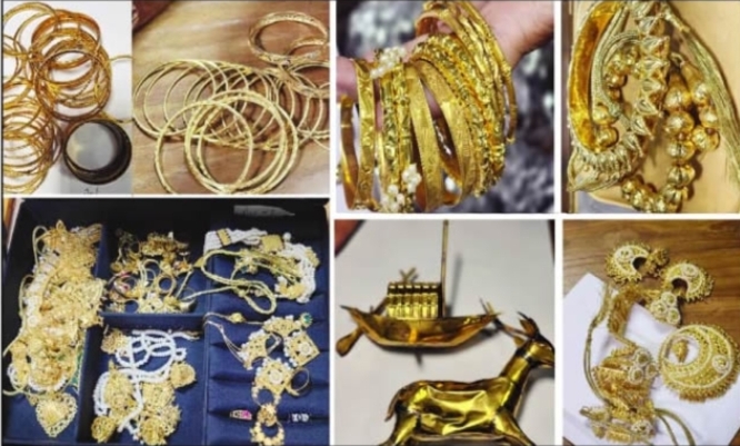 লোকসমাজ ডেস্ক ॥ অগ্রণী ব্যাংকের দুটি লকার খুলে যে ৮৩২ ভরি (৯ হাজার ৭০৭ দশমিক ১৬ গ্রাম) সোনা পাওয়া গেছে, সেগুলো ক্ষমতাচ্যুত প্রধানমন্ত্রী শেখ হাসিনার একার নয়। শেখ হাসিনার সঙ্গে তার বোন শেখ রেহানা, মেয়ে সায়মা ওয়াজেদসহ পরিবারের সদস্যদের নামে ওই সব সোনা জমা রাখা হয়েছিল নথিপত্র পর্যালোচনায় দেখা গেছে। এসব সোনার মধ্যে স্বর্ণালংকারের পাশাপাশি সোনার নৌকা ও হরিণ রয়েছে।