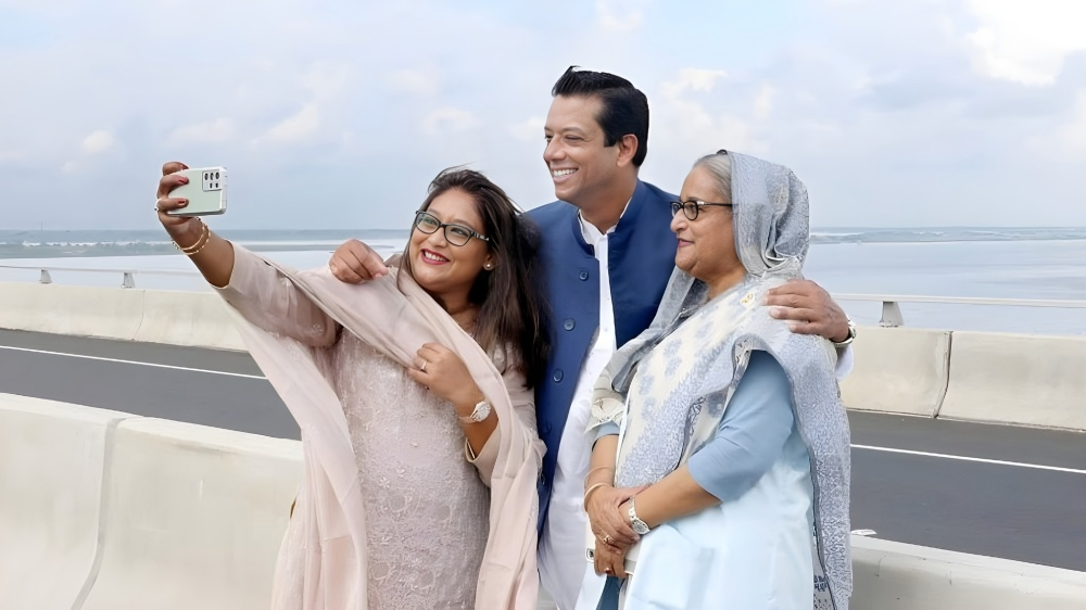ছেলে-মেয়ের সঙ্গে শেখ হাসিনা। ছবি: সংগৃহীত