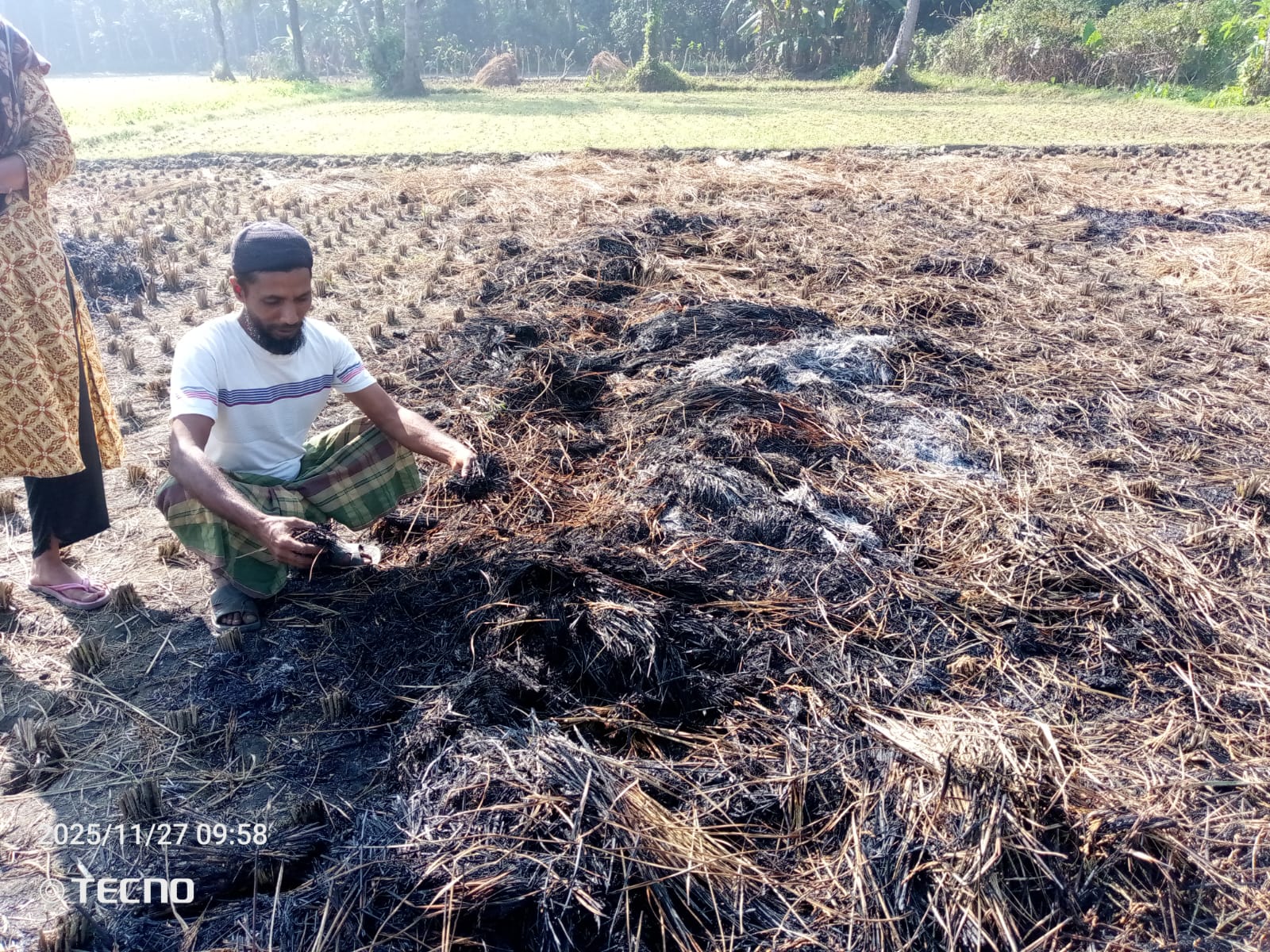 তবে তিনি জানান, কেই ইচ্ছাকৃতভাবে তার ক্ষেতের ধান আগুন দিয়ে পুড়িয়ে দিয়েছে।