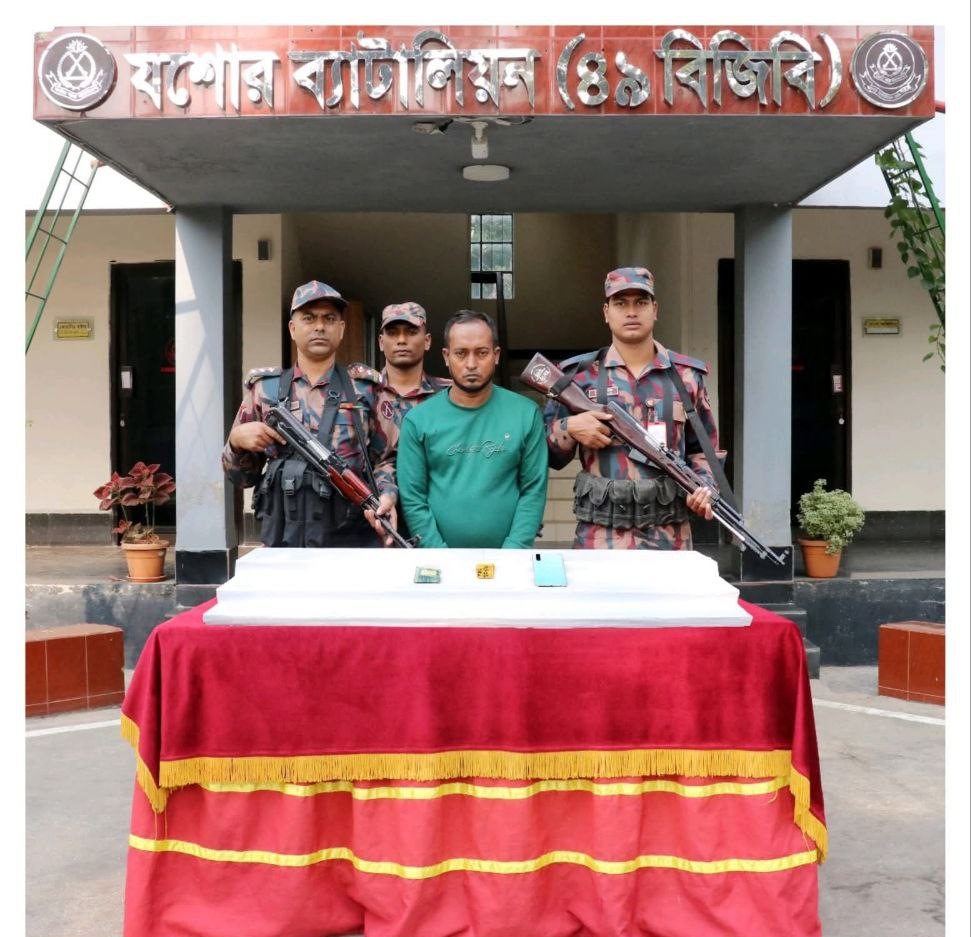 যশোরে কোমরে বিশেষ কায়দায় লুকিয়ে রাখা সোনার বারসহ পাচারকারী আটক