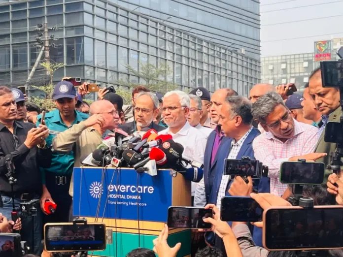 এভারকেয়ার হাসপাতালের সামনে সাংবাদিকদের ব্রিফ করেন ডা. এ জেড এম জাহিদ হোসেন।। ছবি-সংগৃহীত