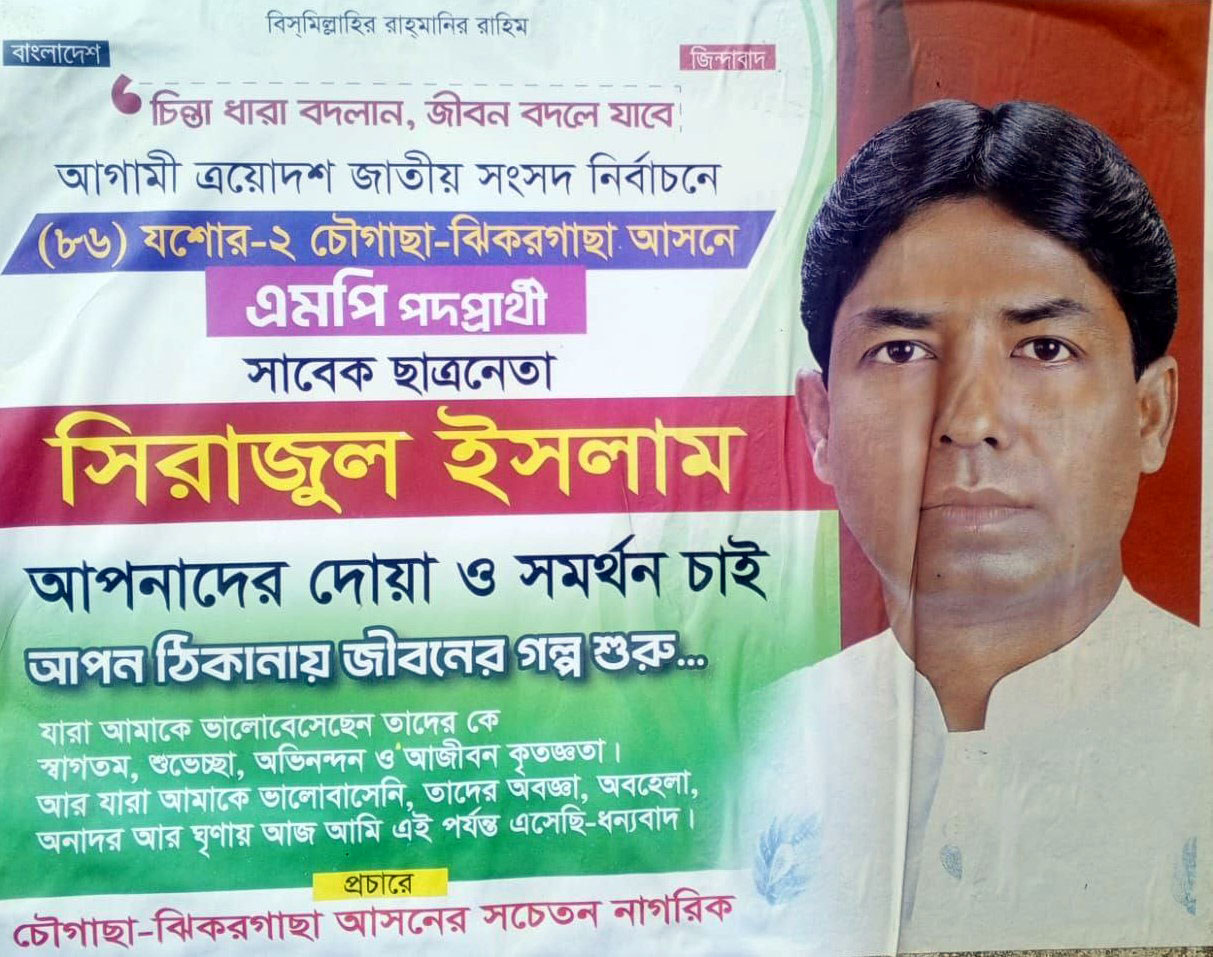 বুধবার এই নির্বাচনী স্বপ্নদ্রষ্টাকে আদালতের মাধ্যমে কারাগারে পাঠানো হয়েছে। তার নির্বাচনী প্রচারণার পোস্টারগুলো এখন ঝিকরগাছার দেয়ালে দেয়ালে বিদ্রুপ ছড়াচ্ছে। সিরাজুল ইসলাম জানিয়েছেন, স্বতন্ত্র প্রার্থী হওয়ার প্রস্তুতি নিচ্ছিলেন তিনি। তবে ভোটারদের দ্বারে যাওয়ার বদলে আদালতের পরোয়ানায় তাকে যেতে হলো কারাগারের অন্ধ কুঠুরিতে।