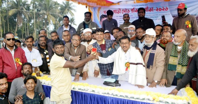 স্টাফ রিপোর্টার ॥ যশোরের পাচবাড়িয়া গ্রামবাসীর উদ্যোগে গরুর গাড়ির দৌড় প্রতিযোগিতায় বিজয়ীদের মাঝে পুরস্কার বিতরণ করা হয়েছে। শুক্রবার বিকেলে যশোর সদর উপজেলার পাচবাড়িয়া গ্রামে এই ঐতিহ্যবাহী গরুর গাড়ির দৌড় প্রতিযোগিতা আয়োজন করে গ্রামবাসী।