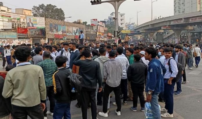 সাকিব হত্যার বিচারের দাবিতে সড়ক অবরোধ করেন শিক্ষার্থীরা, ছবি: সংগৃহীত।