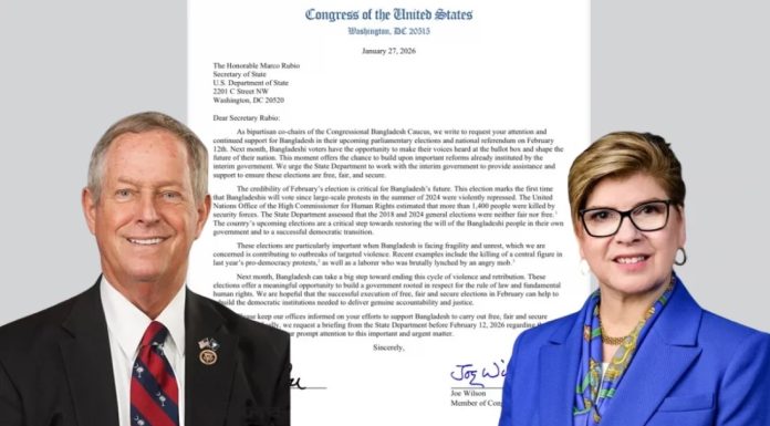 বাংলাদেশে সুষ্ঠু নির্বাচন করতে মার্কিন কংগ্রেসম্যানদের চিঠি