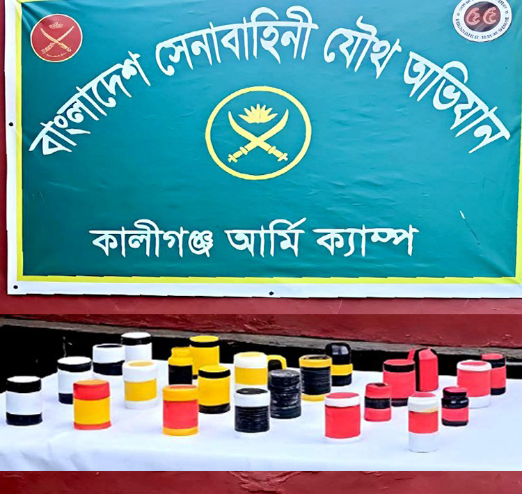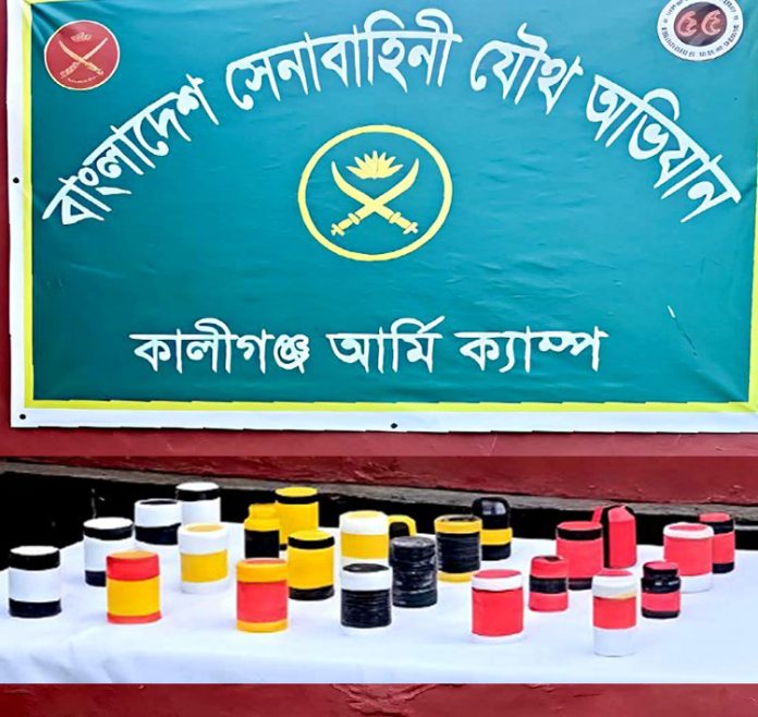কালীগঞ্জে যৌথ বাহিনীর অভিযান, ২৪টি ককটেল ও দেশি অস্ত্র উদ্ধার