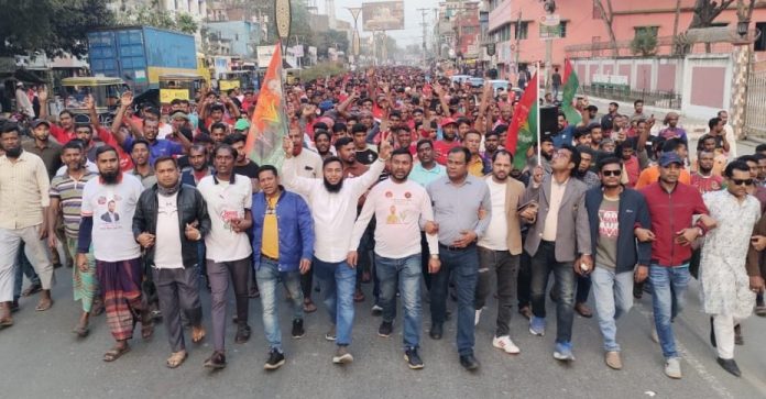 বেনাপোলে নুরুজ্জামান লিটনের পক্ষে শ্রমিক ইউনিয়নের প্রচার মিছিল