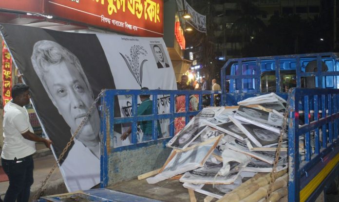 গতকাল শনিবার অনিন্দ্য ইসলাম অমিতের আহ্বানে জেলা স্বেচ্ছাসেবক দলের নেতৃবৃন্দ নির্বাচনে ব্যবহৃত সকল প্রকার ব্যানার, ফেস্টুন সামগ্রী অপসারণ করে।