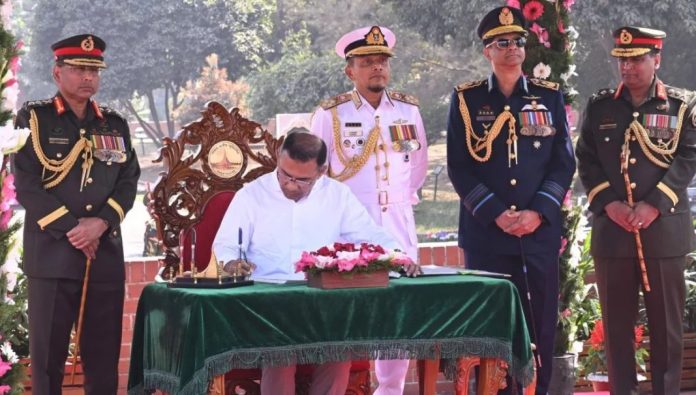 স্মৃতিসৌধে মহান শহীদদের ফুলের শ্রদ্ধা নিবেদন শেষে স্মৃতিসৌধের পরিদর্শন বইয়ে স্বাক্ষর করেন প্রধানমন্ত্রী তারেক রহমান, ছবি: সংগৃহীত।
