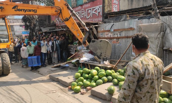 রমজানে শহরকে যানজটমুক্ত রাখতে যশোর পৌরসভার উচ্ছেদ অভিযান শুরু