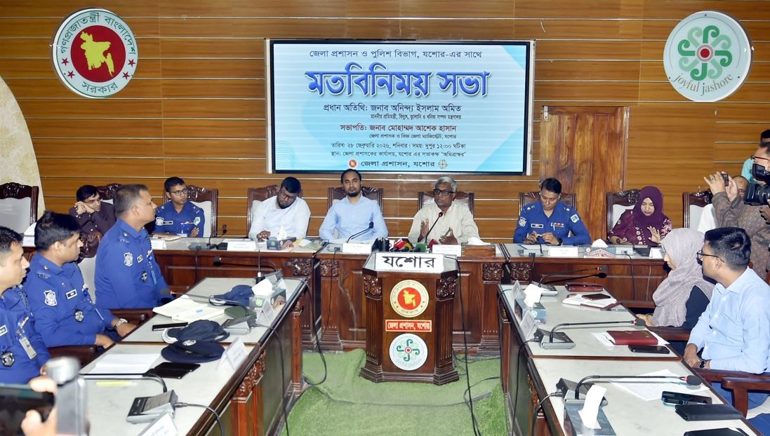 জেলা প্রশাসক মোহাম্মদ আশেক হাসানের সভাপতিত্বে মতবিনিময় সভা অনুষ্ঠিত হয়। সভায় বক্তব্য রাখেন, পুলিশ সুপার সৈয়দ রফিকুল ইসলাম, অতিরিক্ত পুলিশ সুপার আবুল বাশার, রুহুল আমিন, যশোর স্থানীয় সরকার বিভাগের উপ পরিচালক রফিকুল হাসান, যশোরের অতিরিক্ত জেলা ম্যাজিস্ট্রেট ইরুফা সুলতানা প্রমুখ।
