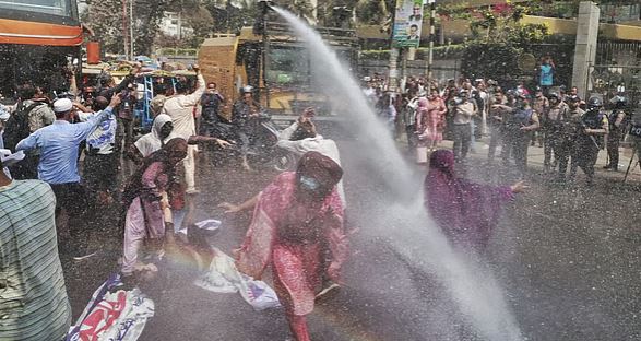 বিক্ষোভকারীরা শাপলা চত্বরের প্রধান সড়ক অবরোধ করলে জলকামান ব্যবহার করে সরিয়ে দেয় আইনশৃঙ্খলা রক্ষাকারী বাহিনী, ছবি: সংগৃহীত।