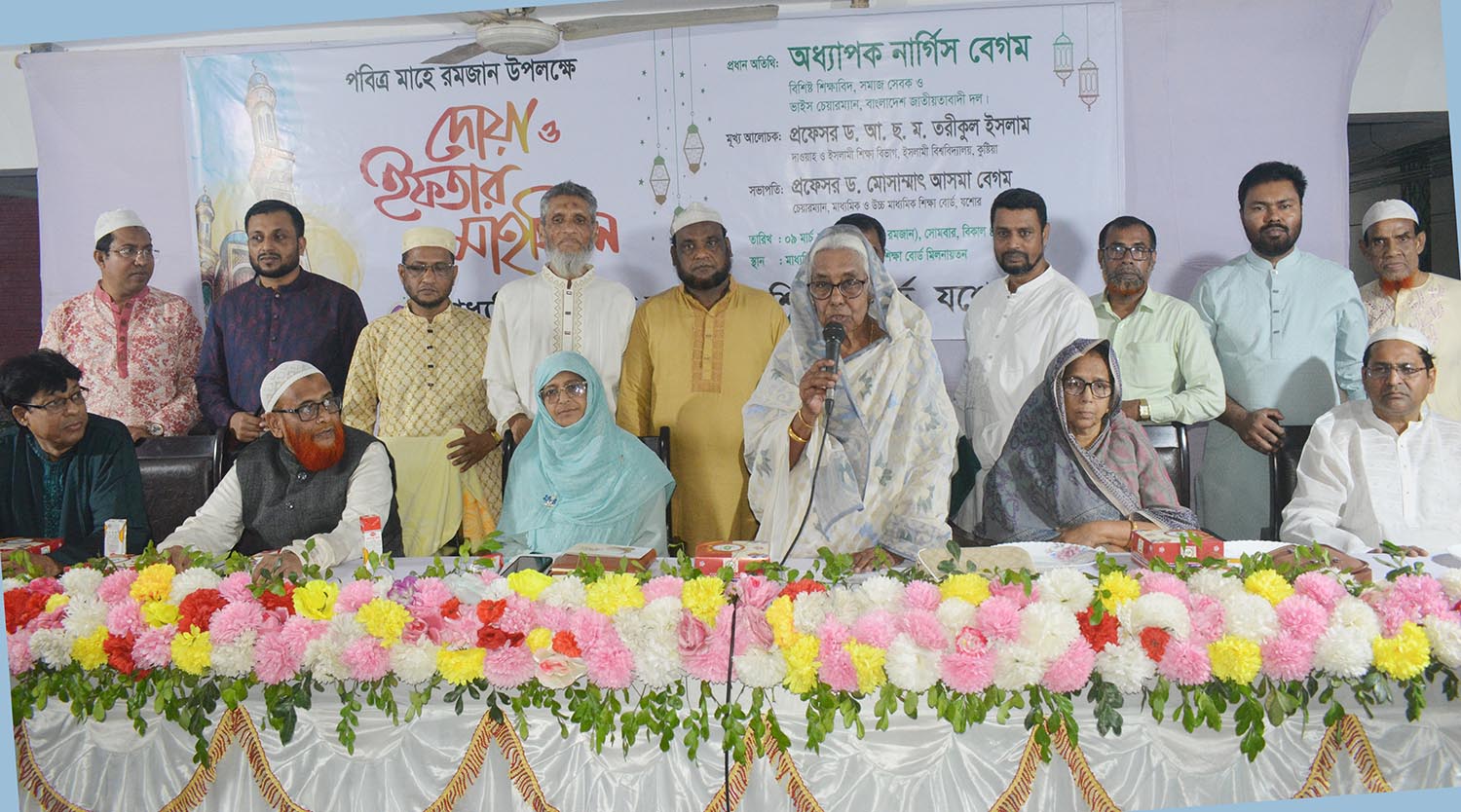অনুষ্ঠানে মুখ্য আলোচক হিসেবে উপস্থিত ছিলেন কুষ্টিয়া ইসলামী বিশ্ববিদ্যালয়ের দাওয়াহ ও ইসলামি স্টাডিজ বিভাগের প্রফেসর ড. আ.ছ.ম তরিকুল ইসলাম। এছাড়া সভায় অন্যান্যের মধ্যে বক্তব্য প্রদান করেন শিক্ষাবোর্ডের সচিব প্রফেসর এস এম মাহাবুবুল ইসলাম এবং পরীক্ষা নিয়ন্ত্রক প্রফেসর ড. আব্দুল মতিন। ইফতারের পূর্বে দেশ ও জাতির কল্যাণ কামনা এবং সাবেক সফল প্রধানমন্ত্রী বেগম খালেদা জিয়ার আত্মার মাগফেরাত কামনা করে বিশেষ মোনাজাত করা হয়। অনুষ্ঠানে বোর্ডের বিভিন্ন পর্যায়ের কর্মকর্তা, কর্মচারী ও আমন্ত্রিত অতিথিবৃন্দ উপস্থিত ছিলেন।
