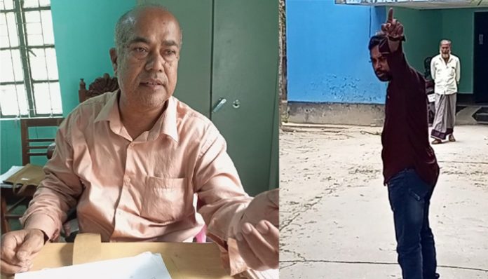 ছবি: ভূমি অফিসার নিকুঞ্জ কুমার বিশ্বাস ও পিয়ন তোতার মিয়া।