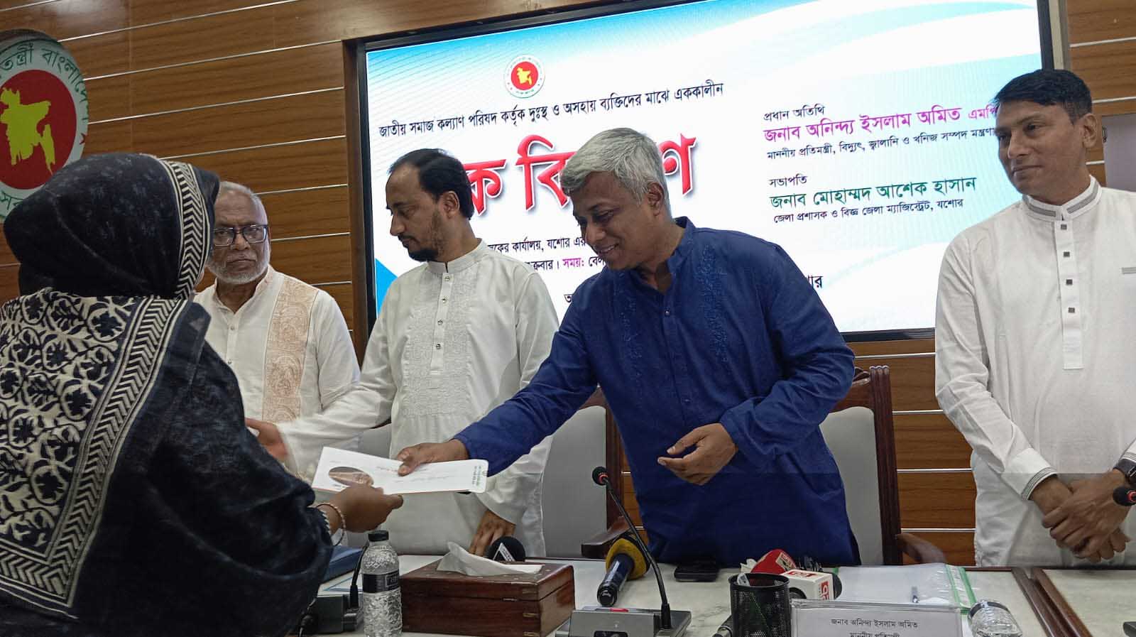 অসহায় মানুষের মাঝে সরকারের আর্থিক সহায়তা পৌঁছে দিতে যশোরে বিশেষ চেক বিতরণ অনুষ্ঠান।। ছবি: সংগৃহীত