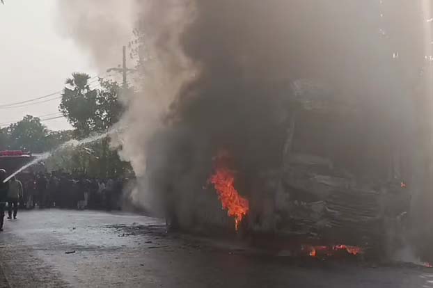 যশোরে চলন্ত বাসে ভয়াবহ অগ্নিকাণ্ড; অল্পের জন্য প্রাণ রক্ষা পেল অর্ধশতাধিক যাত্রীর