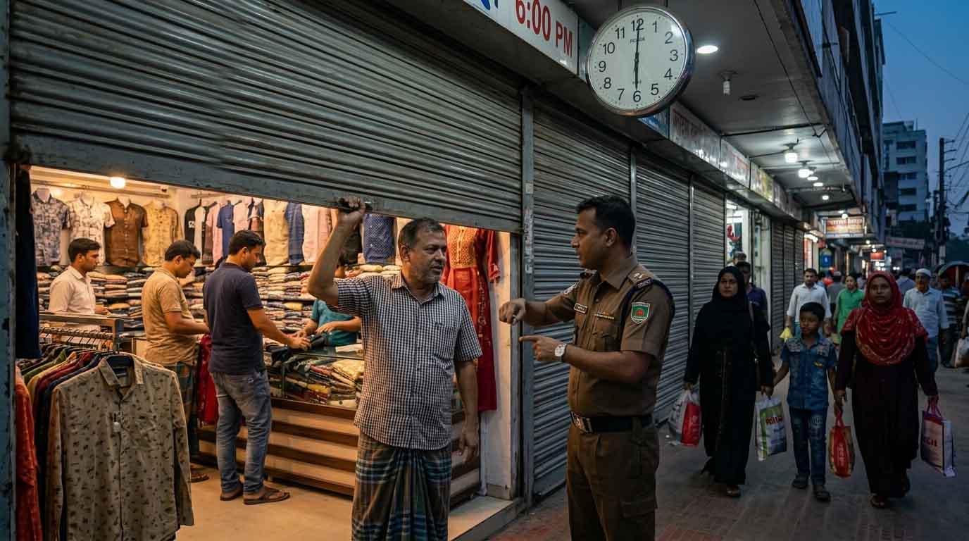 দেশের সব দোকানপাট ও শপিং মল সন্ধ্যা ৬টার মধ্যে বন্ধ হবে, যা আজ শুক্রবার থেকেই কার্যকর হবে।। ছবি: এআই জেনারেটেড প্রতীকী ছবি