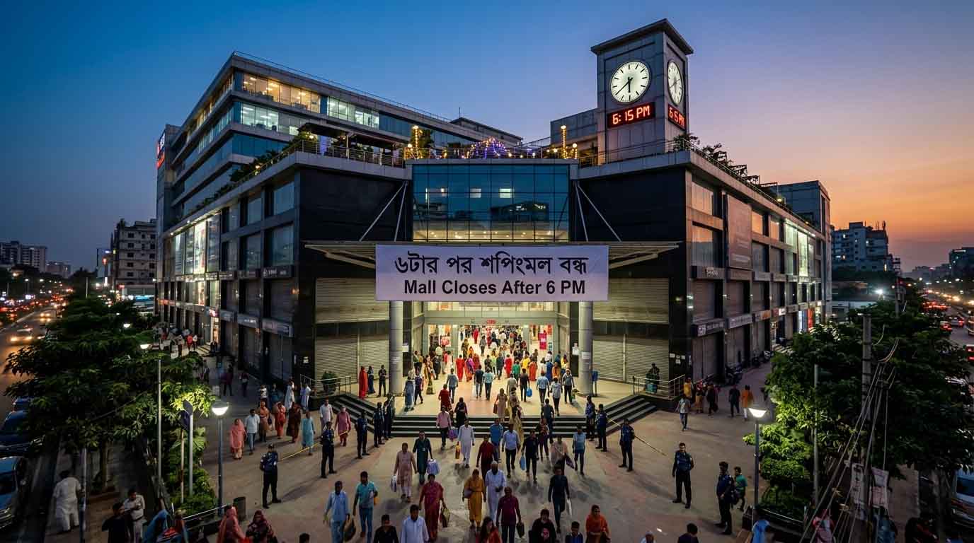 জ্বালানি ও বিদ্যুৎ সাশ্রয়ে সন্ধ্যা ৬টার মধ্যে দোকান ও শপিংমল বন্ধের সরকারি সিদ্ধান্তই বহাল থাকছে।। ছবি: এআই জেনারেটেড/লোকসমাজ