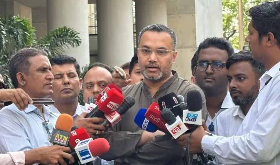 সচিবালয়ে সাংবাদিকদের সঙ্গে আলাপকালে মালয়েশিয়ার শ্রমবাজার নিয়ে সরকারের পরিকল্পনার কথা জানাচ্ছেন উপদেষ্টা মাহদী আমিন।। ছবি: সংগৃহীত