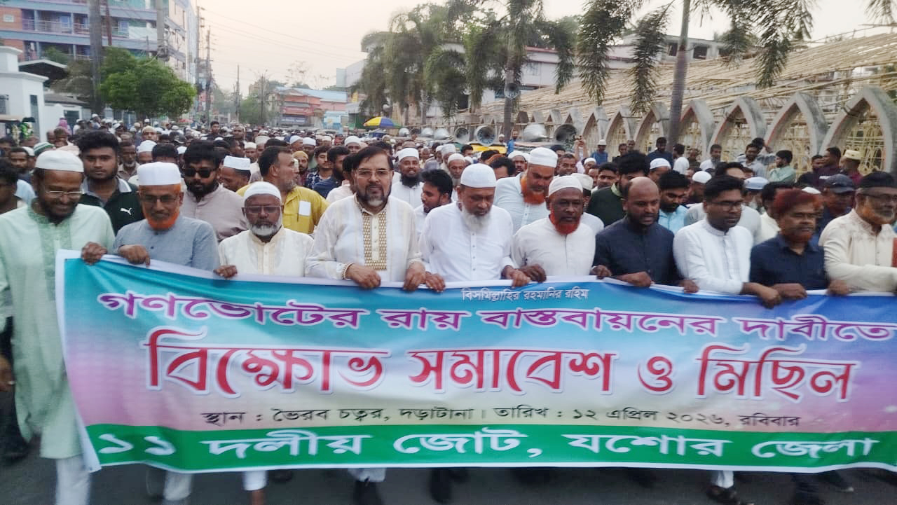 যশোরে ১১ দলের বিক্ষোভ যে যায় লঙ্কায়, সেই হয় রাবণ : গোলাম রসুল এমপি