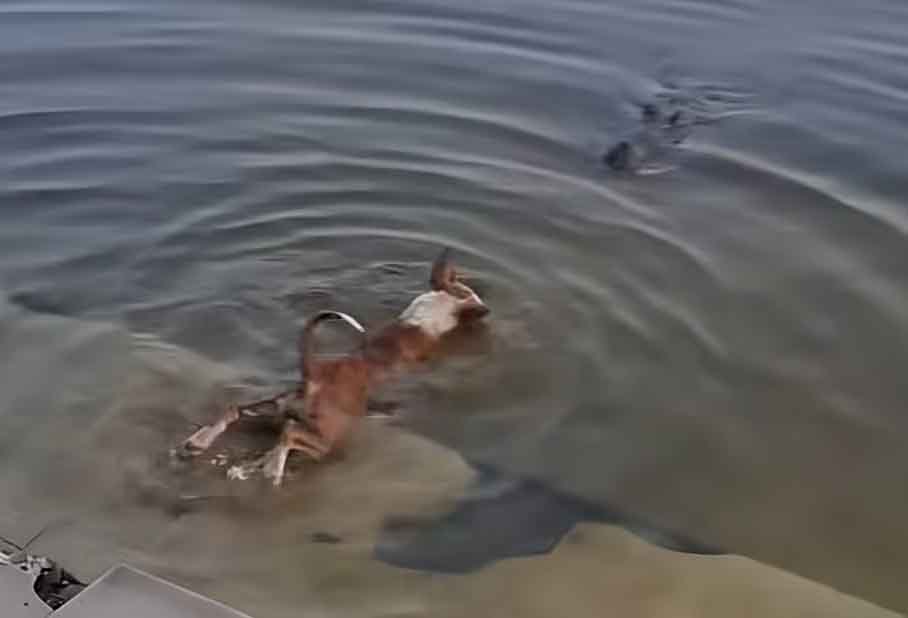 কুকুরের দিয়ে এগিয়ে আসছে কুমির। এরপরই কুকুরটিকে ধরে নিয়ে যায় কুমির।। ছবি: সংগৃহীত