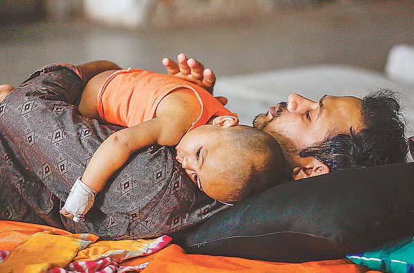 আক্রান্ত শিশুকে পরম মমতায় বুকে জুড়িয়ে আছেন এক বাবা; দেশজুড়ে হামের প্রকোপ বৃদ্ধিতে প্রান্তিক পরিবারগুলোতে বাড়ছে উদ্বেগ ও উৎকণ্ঠা।। ছবি: সংগৃহীত