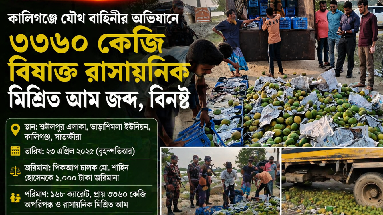 কালিগঞ্জে যৌথ বাহিনীর অভিযানে বিষাক্ত আম জব্দ ও বিনষ্ট