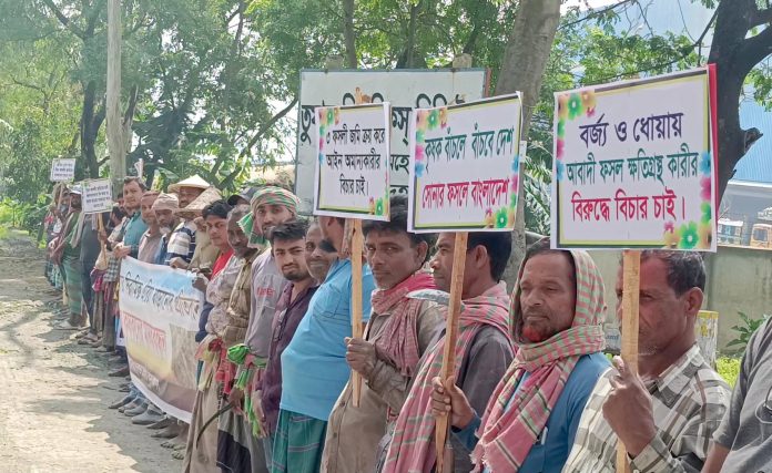 মহেশপুরে কারখানার বর্জ্যে হুমকির মুখে ফসলি জমি রক্ষায় কৃষকদের মানববন্ধন